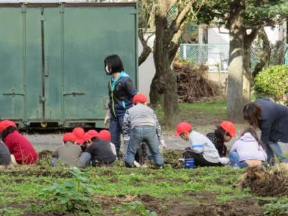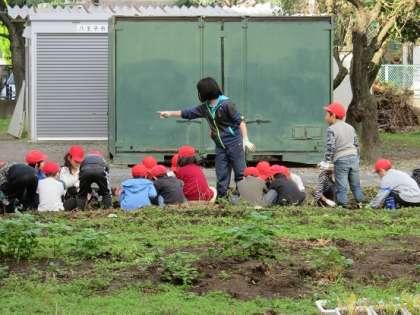 子どもたちは、思い描いていたよりも大きなお芋が取れて、大喜びでした。そして、収穫したお芋を図工の時間に絵を描きます。また、お芋は給食の食材となって、全校の人が味わいます。