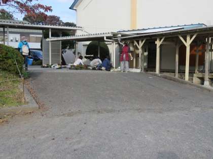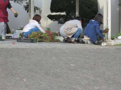 花の会の皆さんが、体育館前のプランターのお世話をしていただきました。週末の展覧会の会場がより一層華やかになりました。ありがとうございました。