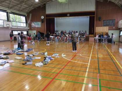 5年生の子どもたちの演奏の様子を撮影して、そして、演奏した曲をその場で、子どもたちは聴き取りをしました。自分たちの演奏の振り返りをしながら、どんなところに気を付けたらようか、子ども自身が気が付くように的確な質問がされていて、子どもたちは、次に演奏するときに、何に気を付ければよいかしっかりと捉えることができていました。
