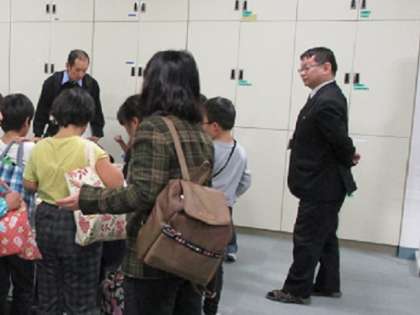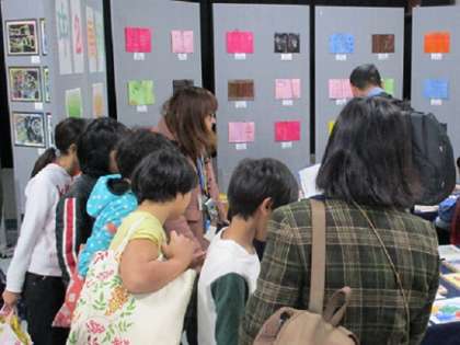 特別支援学校の学校コーディネーターの先生が、時間を割いていただき、作品展示の会場を一つ一つ案内をしていただけました。すみれ学級の子どもたちは、小学生や中学生、高校生の作品を熱心に鑑賞していました。