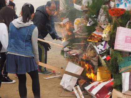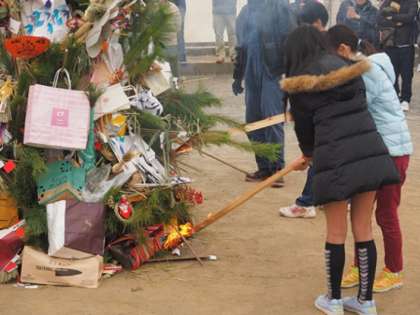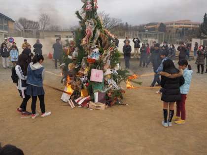 いのしし生まれの6年生の子どもたちによる点火が行われました。