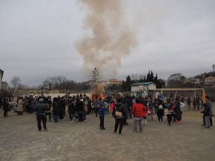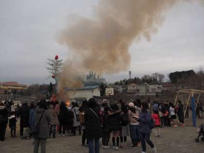 やぐらの火は、多くの参加者に見守られて、燃え上がりました。