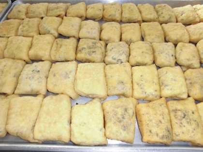 本日は、油揚げの春巻きを作りました。肉と野菜、春雨を炒め、油揚げにくるみ、焼きました。表面には、しょうゆをつけて、焦げ目をつけるようにしています。