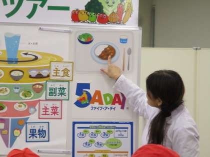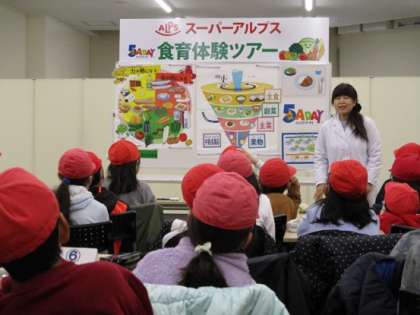スーパーアルプスはざま店で、子どもたちが食べ物のことをいろいろ教えていただいた栄養士さんは、ファイブ・ア・ディー協会の栄養士さんで、全国のスーパーマーケットと連携して、小学生や幼稚園・保育園の子どもたちに、食べ物のことを教えていただいています。