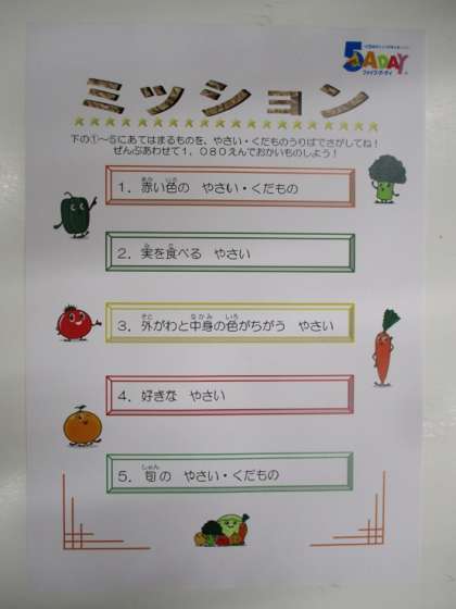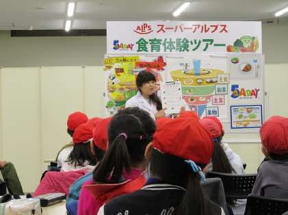 研修室での座学に続いて、3年生の子どもたちは、栄養士さんから出された『ミッション』を元に、スーパーマーケットの売り場で、体験活動を行います。