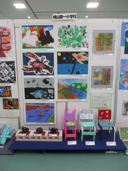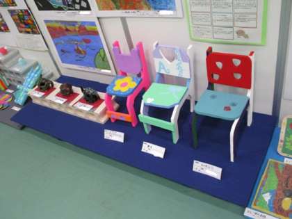 図工の作品が、いろいろな学年の子どもたちの代表児童の作品を展示しました。