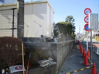 この改修工事では、ブロックの部分を削って少なくした分、金網を多めに取り付けます。
