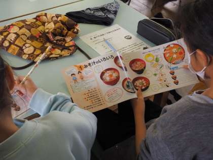 実習のはじめは、子どもたちが教科書やワークシートで、実習の流れを勉強しました。