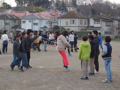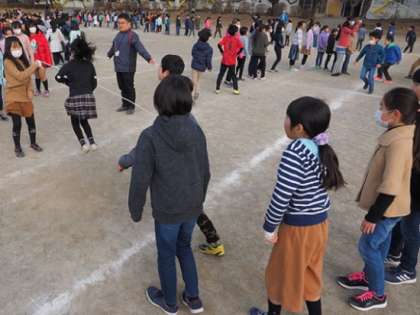 朝の集会時に、学級対抗の『大縄跳び集会』が行われました。どのクラスもこれまでの練習のときの最高回数を更新しようと頑張っていました。