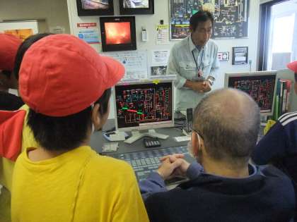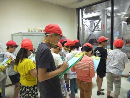 最後に、コックピット内の臭いをかぐ体験もしました。「わー!!すごい臭い!!」「息ができないよ・・」など、顔をしかめる姿もありましたが、エアーカーテンで臭いが外に漏れない工夫や、実際にそこで働く人たちの苦労など実感できた、まさに体験的に学ぶことができたようです。
