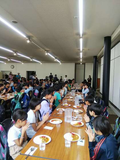 食事係の挨拶で昼食が始まりました。おかわり可だそうです。