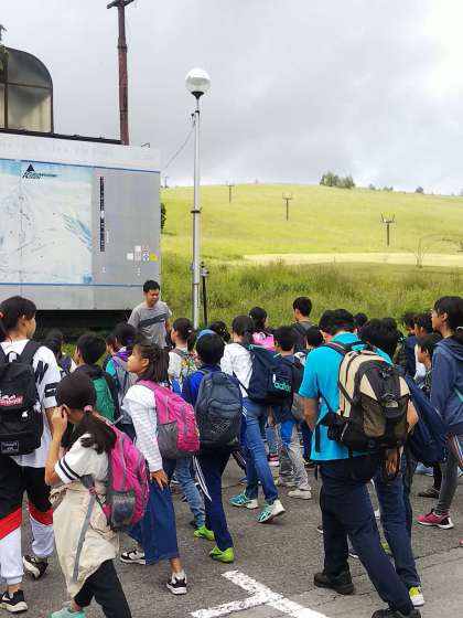 ハイキングの前に、しっかり準備運動をしました。リフトに乗って出発です。