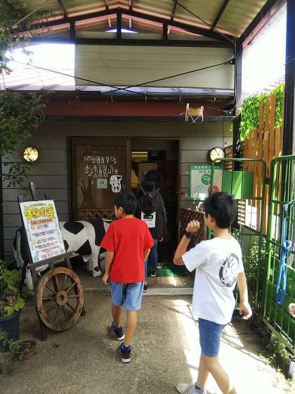 長門牧場に着きました。今度は、バター作り体験学習をします。