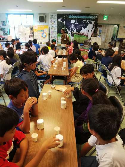 バターと分離した牛乳を味見しました。甘くて美味しいそうです。