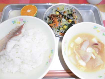 今日の給食は、たんぱく質とビタミンを取れるバランスの良いメニューです。