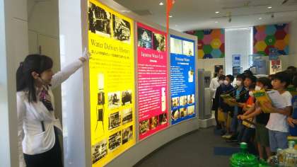 この工場は、水の研究をしています。安心で安全な水を作っているところです。