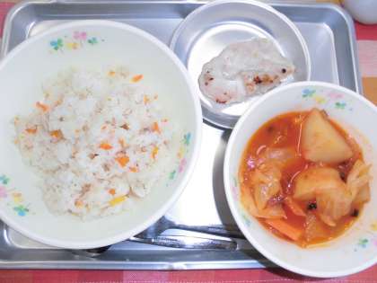 2020年に開催される東京オリンピック・パラリンピックに向けて、「学ぼう!食べよう!世界の料理」をテーマに過去に、オリンピックが開催された国の料理を給食で作り、その国について美味しく・楽しく学んでいきます。今日は「ロシア」の料理を作ります。それではメニューの紹介をします。