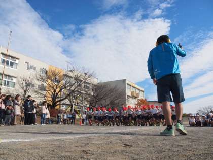 3校時目は、中学年です。3年生は1000m、校庭を1周走ってから湯殿川の河川敷コースを走ります。4年生は1200m、校庭を2周走ってから湯殿川河川敷へ。たくさんの保護さyの方の応援を受け、張り切ってスタートしました。