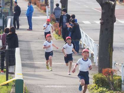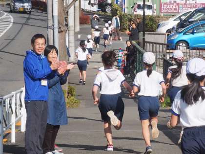 待っている学年の児童も、大きな声で声援を送っていました。最後まで走り通した友達を、大きな拍手で迎える温かい場面も見られました。