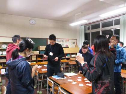 学級経営に役立つ教員研修を行いました。「よりよ人間関係をはぐくむ」をことをねらいとしたこゲームをやりました。名付けて「億々長者」ゲームです。先生たちがグループになり、資金をもとにほかのグループとじゃんけんしながら資金を増やしていきます。資金を増やすために、グループで協力したり作戦を立てたりします。話し合いの場面では、互いの意見を聞きあったり、意見をまとめたりするコミュニケーション力が必要とされます。ゲームの後の振り返りの中では、それぞれの考えの良さを見つけ発表し合います。こうした学級遊びの中から、話し合いを通して互いの良さを発見したり、協力して課題解決する力をはぐくむことを学びました。