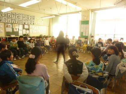 今日は仲良し遊び集会がありました。いつものようにグループごとに校庭、体育館、各教室で楽しく遊びました。冬の季節にしては暖かい日差しのある中、伊学年が仲良くかかわる姿が見られました。