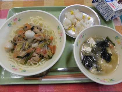 給食では、茹でたじゃがいもとコーンを混ぜ、塩こしょうで味をつけました。たくさん食べて、元気な体を作ってほしいと思います。