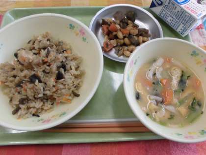 本日は肌寒い気温なので、あたたかい芋の子汁を飲んで身体を温め、元気に過ごしてほしいと思います。「芋の子」という名前だけあってたくさんのじゃがいもが入っています。食べごたえのある汁です。