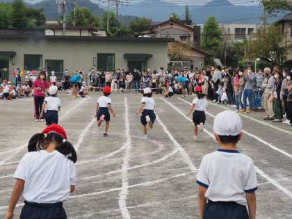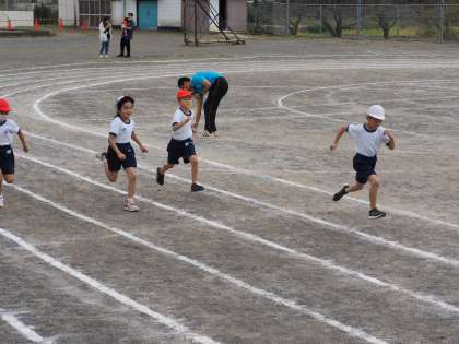 3時間目は1年生と6年生です。1年生にとって、入学してから初めての運動会です。ちょっと遅くなった運動会ですが、その分、大きく成長した1年生の姿をご覧いただけたのではないでしょうか。小さな体で50mを精一杯走る姿に感動させられました。