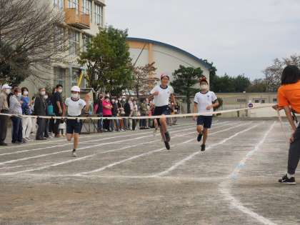 小学校生活最後の運動会の短距離走です。6年生の生き生きと活動する姿を見ていると、あの大変だった1学期のことがまるでなかったことのようにさえ思えます。何事にも一生懸命頑張る6年生は、横一の誇りです。期待通り、最後まで素晴らしいレースを見せてくれました。