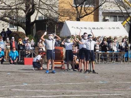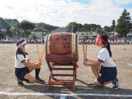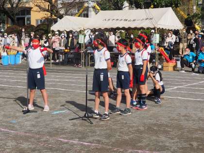 コロナの時代の応援・・・応援団が中心となって考えました。大きな声援はおくれないものの、手拍子や応援うちわ、ウェーブなど、工夫しながら応援に参加します。応援団によるラップや漫才??など楽しい応援をしてくれました。赤いマスクはSSSさんが手作りしてくれました。こうして周りのみんなが様々な場面で支えてくれています。