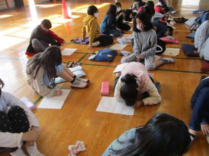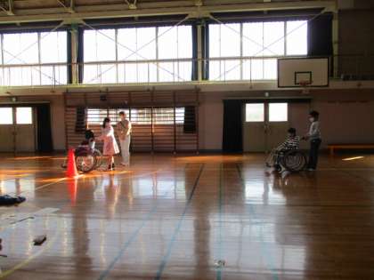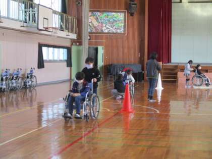 どのペアを見ても、車いすをやさしく押したり、曲がり角や段差では「大丈夫?」「段差があるから少し傾くます。」など声を掛け合う姿がみられました。介助する人と介助される人それぞれコミュニケーションをとることが大切だと言うことが分かったようです。