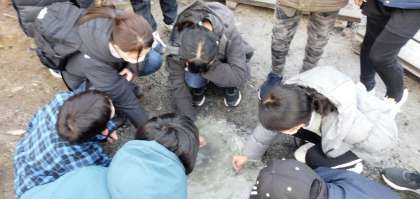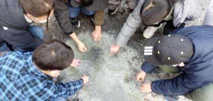 次々に源泉に手を入れ、温かさを確かめる姿がありました。