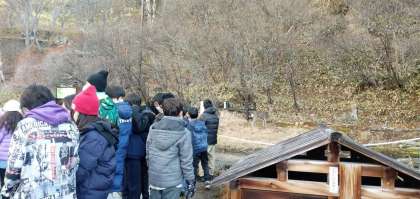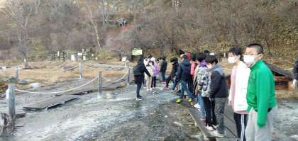 源泉ではシカもお出迎えしてくれました。「初めて見た!」と感動している子もいました。