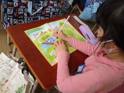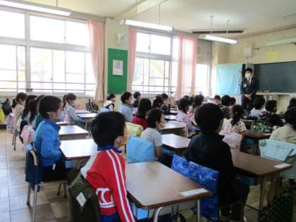 放送での生活指導朝会では、背筋をピンと伸ばして静かに聞く姿も見られました。また、今日は校庭の遊具での遊びにも挑戦しました。読み聞かせなど静かな時間を過ごしたり、真新しい教科書を開いて、どんなことが書いてあるか確かめたり。何事にも目をキラキラさせて興味津々で取り組んでいます。