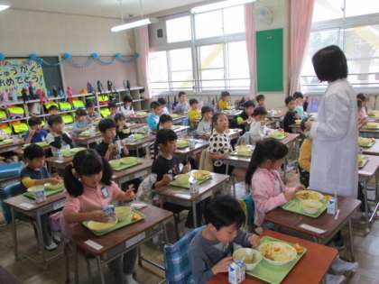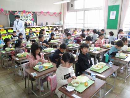 これから、給食をモリモリ食べて、元気に学校生活を送りましょう。