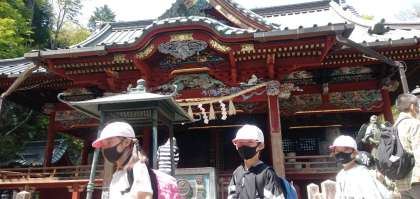 リフト乗り場まで、気持ちのいい山道を歩きます。途中の薬王院も見学しながら歩きます。