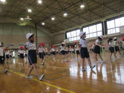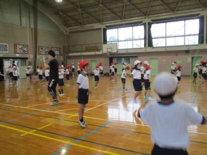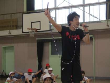 5時間目は2年生です。2年生にも特別にパフォーマンスを見せていただきました。2年生も、生山先生んも演技から目が離せないという感じでじっと息をのんでみている姿がありました。いよいよ自分たちが練習する場面でも、意欲満々で一生懸命練習していました。「みんな、上手だね!!」生山先生からもたくさんほめていただきました。「24時間跳び続け、15万回以上跳んだという「24時間 ギネスチャレンジ」の話にもびっくりしていました。想像もつかない縄跳びの回数に、ただただ唖然とする子供たち。「いつ、ご飯を食べるんですか?」というかわいらしい質問も出て大いに盛り上がりました。