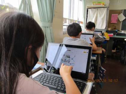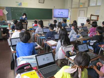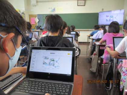 4年生の授業を参観しました。社会科の「私たちのくらしと水道」の学習で、今日は毎日使っている水は、どこから家庭まで運ばれてくるのかについて学習していました。前時までの学習で、東京都では1日に、プールの約14000杯分の水を使っていることからはじまり、こんなたくさんの水はどこから来るのかについて考えました。子供たちから「川や海」「雨」、「水源林」や「浄水場」などのキーワードが出た後で、学習用端末を使って水が届くまでの流れを作る学習活動をしました。
