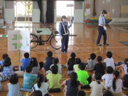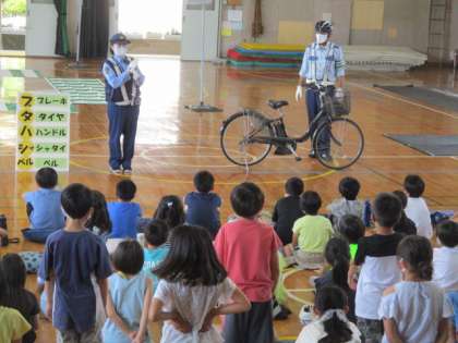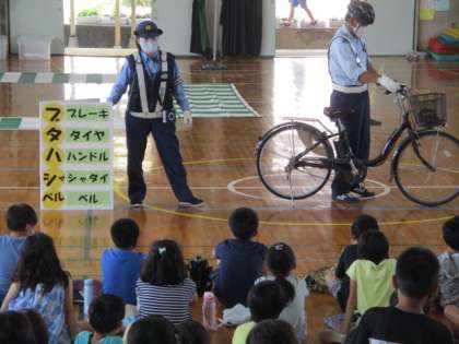 3年生が自転車教室を行いました。警察の方や安全協会の方が子供たちに安全な自転車の乗り方を教えに来てくれました。