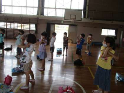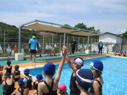 今年度は感染症拡大防止対策として、体育館で準備運動、更衣室と体育館を使って着替え、そして、タオルが接触し合わないようにビニール袋で管理、体が触れ合う活動はしない等、様々な工夫をしながら行っていきます。また、入水する学級も2学級以下とし、補教体制を組みながら安全で安心な水泳指導を行っていきます。
