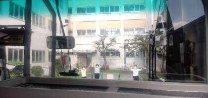 6年生をお見送りしようと、たくさんの先生方が駆けつけてくれました。みんな元気に行ってきまーす!