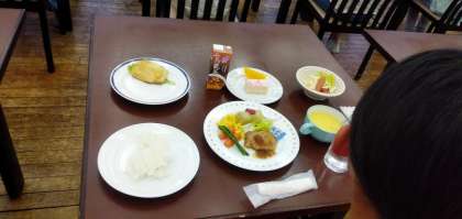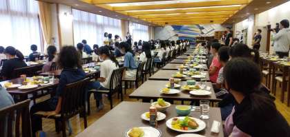 楽しみにしていた宿舎での夕食です。ボリューム満点のメニューににっこりです。