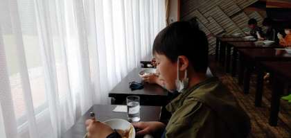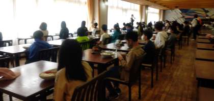 お昼は宿舎に戻ってカレーライスを食べました。ハイキングで相当お腹が空いたようで、お替わりする人が続出していました。