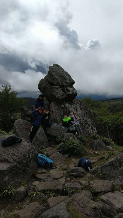 休憩地点の物見岩まで来ました。雲が動き、日が差し始めました。