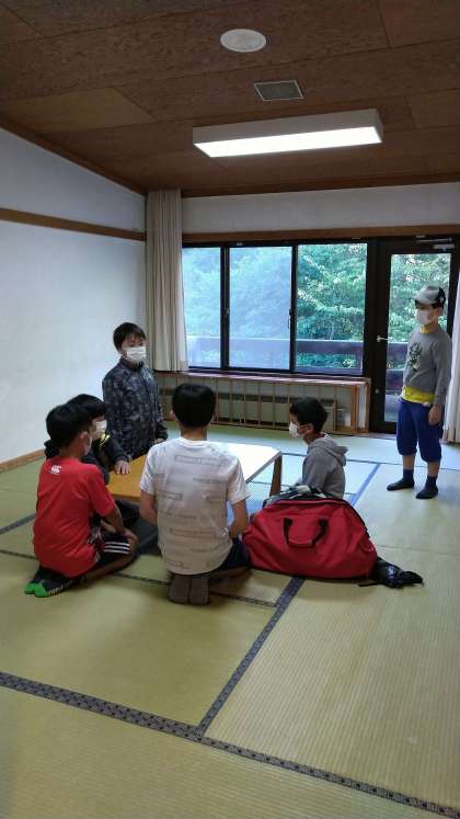 キャンプファイヤーで盛り上がった翌朝です。一番早く準備ができたある男子の班は、次にすることを相談していました。