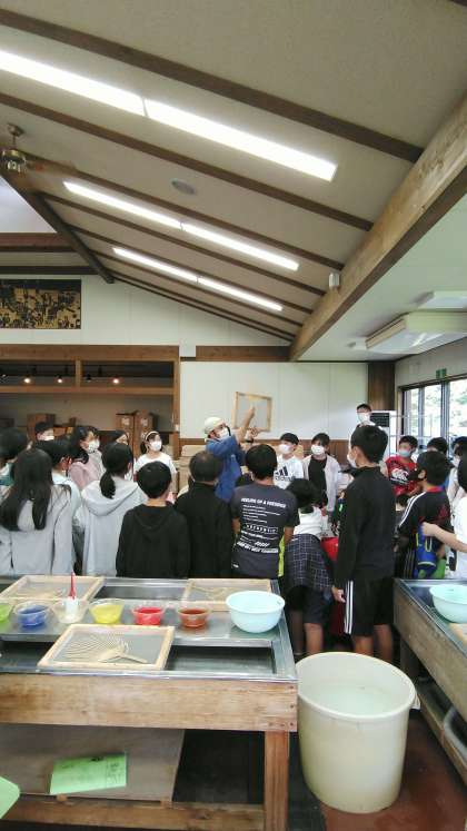 流し込みで紙をすくのが、今回の紙すきだとレクチャーを聞きます。