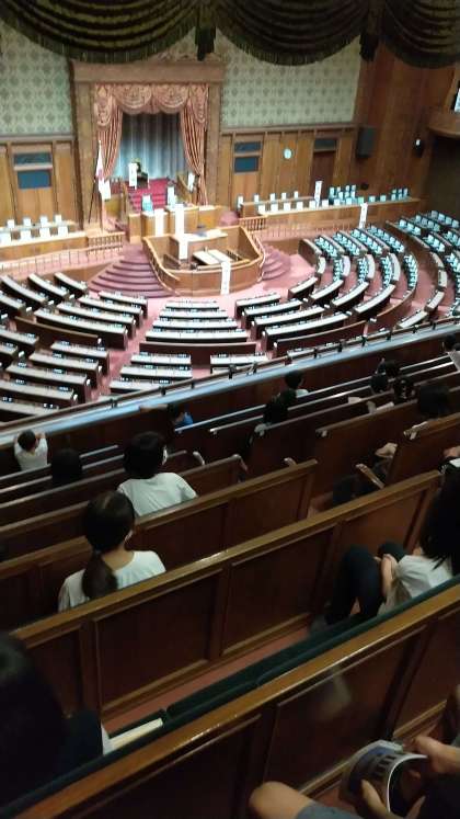 傍聴席での見学が始まります。感染症予防のための座席配置です。