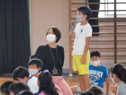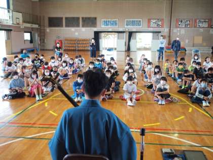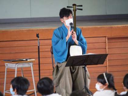 演目の中で「ソーラン節」を歌も入れて演奏してくれました。今年も3・4年生が運動会で踊ります。子供たちも体が自然と動いてしまうような、そんなリズミカルで力強い演奏でした。最後は子供たちに人気のあるアニメのテーマソングを演奏してくださいました。思わず口ずさんだりハミングしたりする姿がありました。