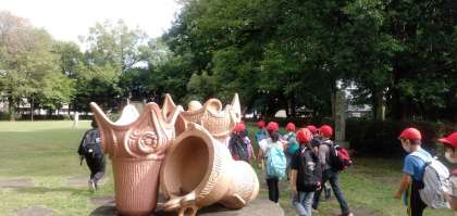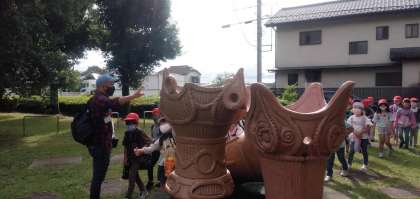 途中、椚田遺跡公園を通りました。「知ってる!」「1年生の時、みんなできたよ!」