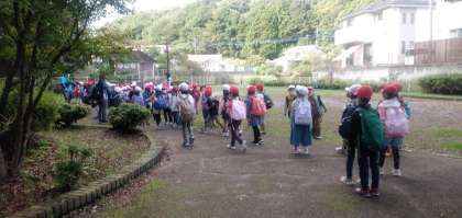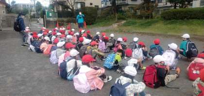 今日は1年生の遠足です。とても上手に集合できたので、予定より早く出発できました。みんな元気に行ってきます。